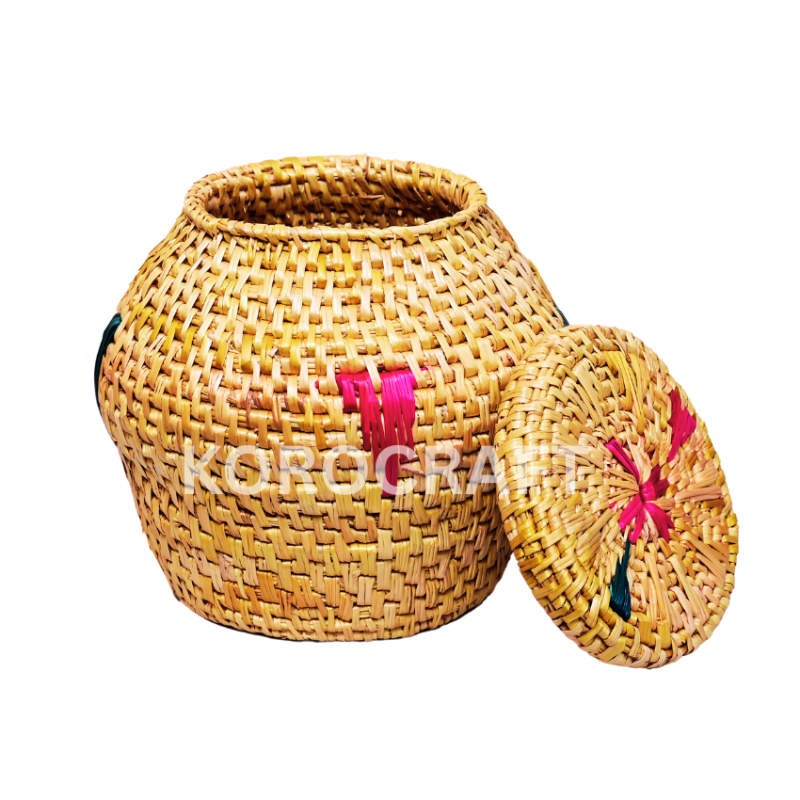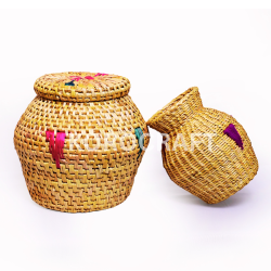 The Golden Grass Urn(Ghum) is a stunning home decor piece that combines usage and utility with beautiful craftsmanship. Made from natural golden grass, this basket features a unique color combination of natural golden and dark brown. With its intricate handwoven design, it adds a touch of elegance to any space.