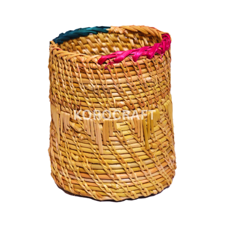 Introducing the korocraft golden grass pen stand, a sustainable and eco-friendly choice for your home or office. This beautifully handwoven pen stand is made from natural golden grass, sourced locally and woven using traditional techniques in Odisha. The result is a stunning and unique piece that adds a touch of elegance to any space.